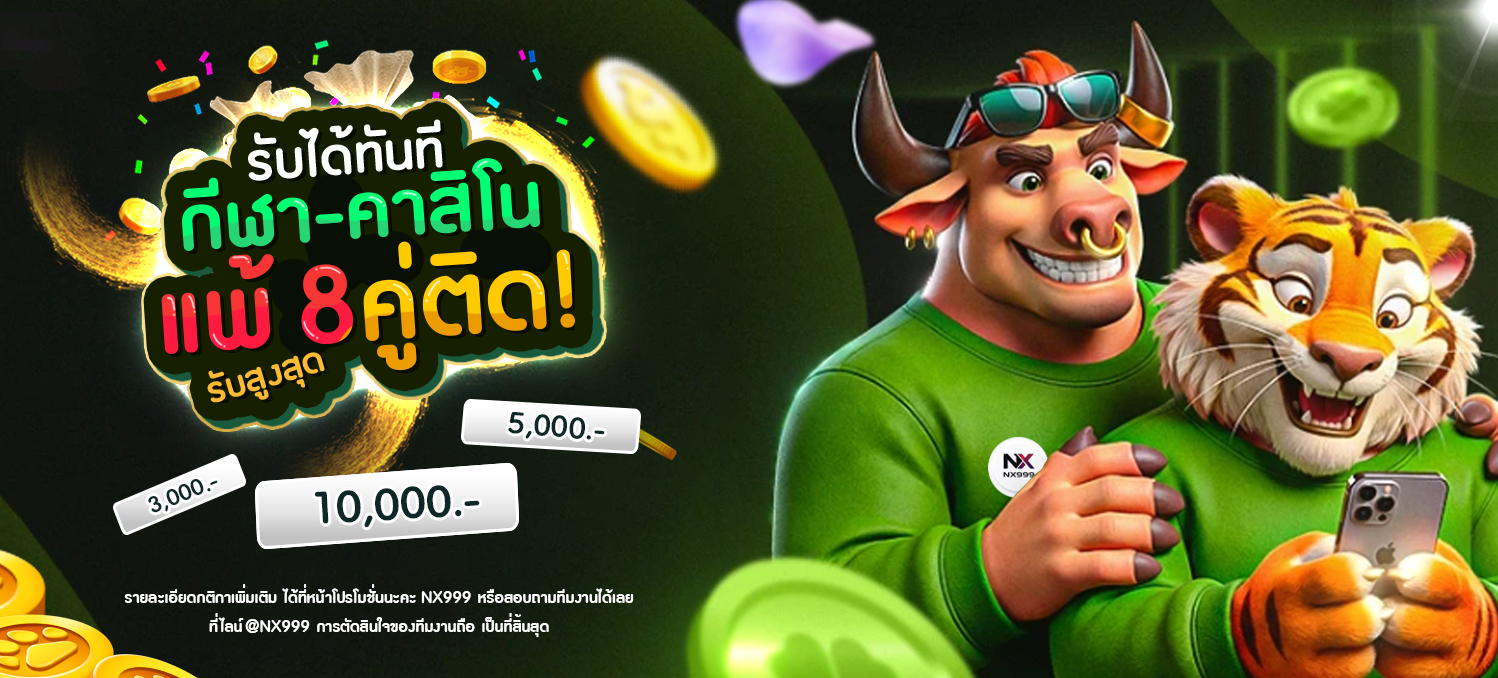 สำหรับสมาชิกเก่า NXX999 ก็ไม่เคยทำให้ผิดหวัง มีโปรโมชั่นรายวัน รายสัปดาห์ และรายเดือนให้เลือกใช้อย่างจุใจ ไม่ว่าจะเป็นโบนัสฝากเงินที่ให้ทุกวันจันทร์ คืนยอดเสียทุกวันศุกร์ หรือโปรโมชั่นสุดพิเศษในช่วงเทศกาลต่างๆ ที่มักจะแจกหนักกว่าเว็บคู่แข่งเสมอ
